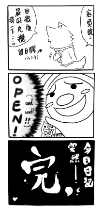 (此篇之後改為灰階,第三張後寬改500) 敲門聲消失了。 「我要進來囉。」 「卡拉卡拉----」(?) 第一次覺得轉門把的聲音, 如此的刺耳。 「蠢銀你今天是怎一........」 話未完,雷的表情已經扭曲到某種境界。 「你...你是怎樣?....當搶匪?還是當暴露狂?」 「ㄎㄠ......咳咳!」 (不行,我現在要忍著砍爆蠢雷的怨念) ...