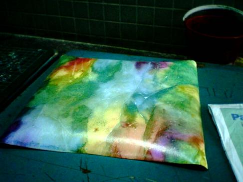 美術課的作品「水晶染」 因為看起來有非洲大自然的情調,所以就請同學拍下來了XD 要拿他來做什麼東西好呢(錢包?筆記本?)