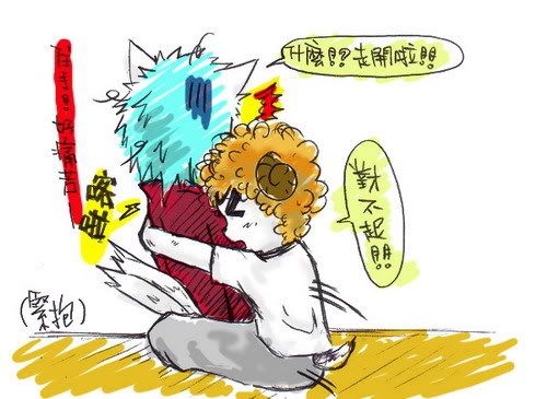 奇怪的是他就突然馬上認錯,這樣就算了也不必四肢都抱住我吧(又不是無尾熊益”)。因為這同學是位笨蛋根本沒考慮到我了肋骨,害我痛了一陣子…