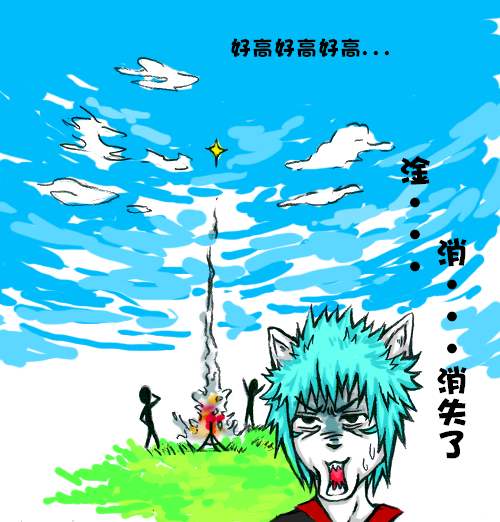害我都說不下去了=口=",還是說看火箭飛起來的感覺很HIGH所以就原諒他了!?