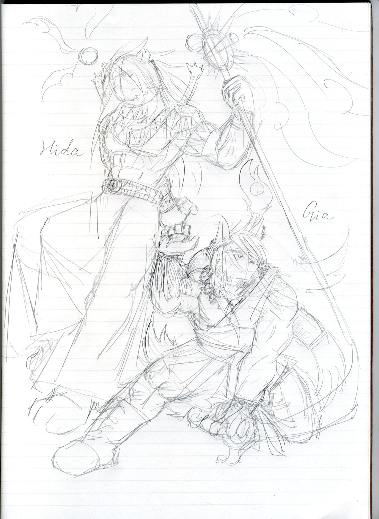第一次使用掃描機,這才發現都沒在練的手繪已經虛掉了... Hida&Gia是我小說的主角