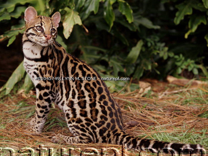 虎貓産於從美國的得克薩斯州到阿根廷北部的美洲。成年的虎貓身長90~30厘米,不包括30~40厘米長的尾巴。肩高45厘米,體重11~16千克。雌虎貓體型比雄的小。虎貓背上的顔色有白色、茶色、黃色和灰色多種。頭上有小黑點。臉頰上有兩條黑帶。背上有4,5條紋向的黑色條紋。身上有像鏈條一樣的黑色圖案。腹部呈白色,上面有黑點。尾巴上也有黑色的條紋和斑點。