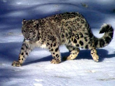 沿俄蒙邊境線分布的雪豹 哈薩克斯坦貨幣1000堅戈 根據1990年代的考察,許多雪豹小群出現在西伯利亞、蒙古、中國的北部和哈薩克斯坦的東北部,呈島嶼化分布,它們被上百公裏的泰加林、厚厚的冬雪和荒漠隔離。這裏的死亡帶面積顯著大於生命帶,這些種群整體存活的可能取決於對各個被分隔的“核心”的保護以及它們之間在空間上進行接觸的可能性。即使是最極端的條件下,雪豹不僅仍出現在100-200年前有記載的分布區,還有不少出現在以前並不知道的區域內。 雪豹至少仍分布於中國的陰山和太康山中一些被隔絕的山脈之中和西伯利亞南部的一係列區域內。陰山及太康山位於戈壁的南部或東南部,係從雪豹的主分布區分隔而來,至今無人能解釋爲什麽雪豹會生活在這些區域裏。雪豹向其分布區最北部和西部的Kuznetsk-Altai、Kansk Belogorye和Transbaikal擴張這一現象,也仍然符合V.G. Heptner設定的框架,可被認定爲最廣泛的物種分布區。Transbaikal分布區(Russia)與其相鄰地區的心髒地帶存在明顯的空間隔離,其距離超過800km。距離之大留下了巨大的缺口,Dzhungarian-Gobi將雪豹的分布區分隔爲兩個大區,即:西伯利亞-蒙古地區和喜馬拉雅-西藏地區。 1976/77年的冬季,在Muiski山脈發現了雪豹,1992/93年冬季 - 在Kodar山脈發現雪豹(一只動物被獵殺),1997年2月,在Ulan-Burgasy山脈發現雪豹。在Ulan-Burgasy地區,甚至40年前就發現了雪豹。 從最近分布邊界算起, 雪豹遷入的長度令人驚歎。Ulan-Burgasy山脈距Khentei Chikoiskiy高原400km,距Sayan Kodar分布區的東部500km - 總距離分別達800km和1200km。非常明顯的是雪豹適應極端條件的能力遠比我們想像得高。該物種比其主要獵物向北延伸的更遠。 雪豹在Tunkinskiy山脈的西面部分的生活條件比其在東部的生活條件略好一些。與此相鄰的區域在Munku Sardyk(3 492 m)爲山脈交界處,大部分區域都可做爲良好的雪豹棲息地。這一區域與Tunkinskiy山脈相鄰並形成了天然走廊帶。該走廊是雪豹到達Bolshoi Sayan山脈及更遠一點進入蒙古Hovsogoul西部的山脈的唯一途徑。雪豹在Munku Sardyk附近是否存在一個群體,目前尚未弄清。該地還沒有觀察到帶有幼仔的雌性雪豹的記錄,但單獨行動的雪豹、成體及其蹤迹等均已發現。最近的兩例發生在1996/1997年的冬季。 中國雪豹現狀及保護 中國青藏高原及帕米爾高原地區是雪豹的主要分布區(Michael, 1988)。在青海,雪豹總數約650只(Schaller et al., 1988),再加上青海西北的昆侖山係和可可西裏部分,估計青海的雪豹不會低於1,000只。在西藏,雪豹分布區的面積至少爲青海的兩倍(馮祚建,1992),加上甘肅、新疆和四川西北部,估計全國雪豹的總數在2,000-3,000只左右。但據Novell 和Jackson (1992), Schaller 於1992 和Jackson於1992年曾報道,中國分布總共估計有2,000-2,500左右,該報道還稱全世界共有4,510-7,350只。 雪豹有很高的經濟價值,所以一直是人狩獵和捕殺的對象。特別是因其有固定的活動路線,偷獵者在其必經之路埋下鐵夾就可將其捕獲,導致其種群瀕危。同時,岩羊數量下降也給雪豹這個靠捕食岩羊生存的種群造成了災難。 我國曾在新疆塔克拉瑪幹大沙漠腹地的安迪爾胡楊林附近,以及在尉犁縣的蘆葦叢中捕到過它。 最近捕獲記錄是在2007年12月,青海省海南藏族自治州共和縣切吉鄉祁家村村民捕獲1只成年雌性雪豹,年齡在5至6歲之間。 近年中國相繼在有雪豹分布地區建立和籌建了一批自然保護區,如:甘肅東大山、新疆塔什庫爾幹自然保護區,1992年中國承辦了第七屆國際雪豹學術討論會,對保護和科學研究雪豹起了推動作用。 雪豹是亞洲高山高原地區最具代表性的物種,國際上正在實施一個保護雪豹行動計劃,期待使雪豹得到很好的保護,進而能夠保護整個高山地區的動物區係和生態係統。
