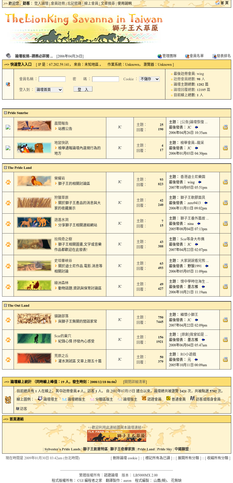 由於 獅子王 是 1994 年的動畫電影,當年會員的重心漸漸的轉移到其他主題的論壇上,且由於這個論壇程式在創站後已無更新,如果無新文章的發表就無法觀看當時的主題。該論壇已於2010年中旬結束營運。